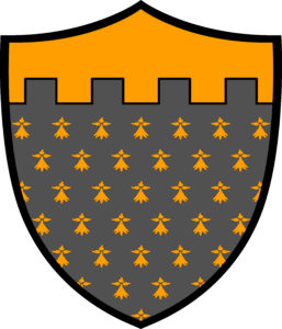 Symbole : Mur gris foncé orné d’hermine sur fond orange